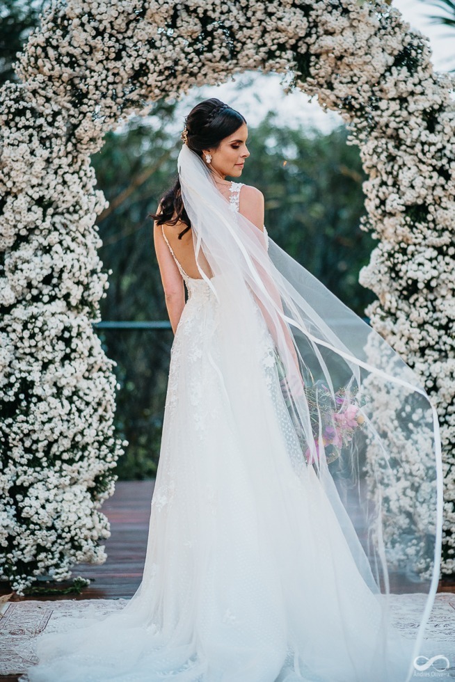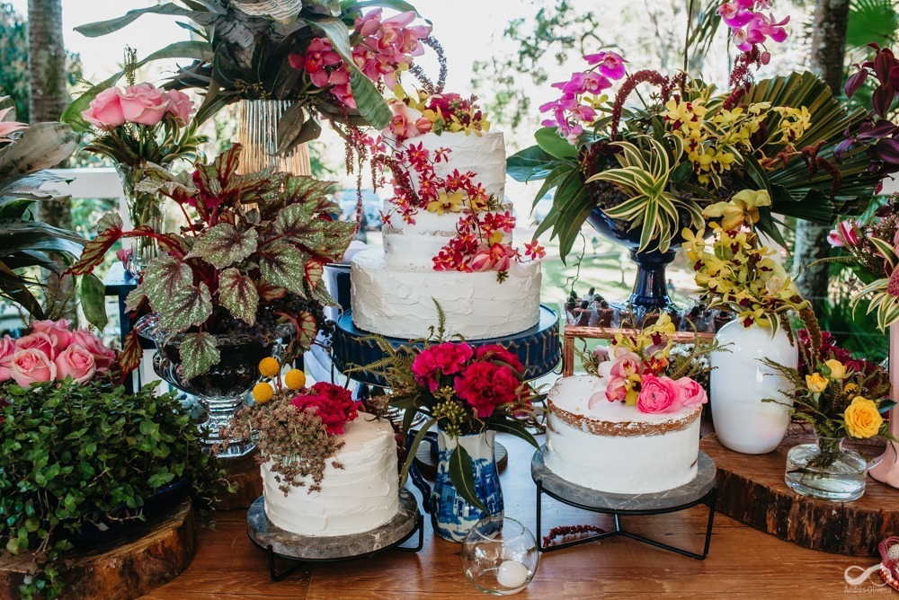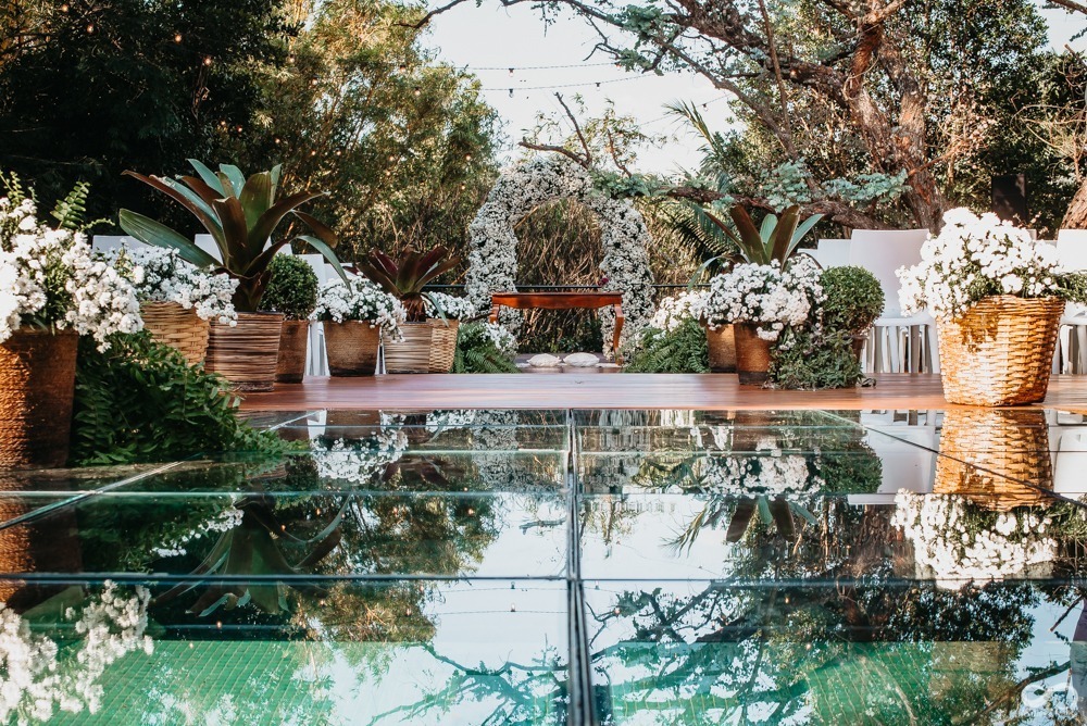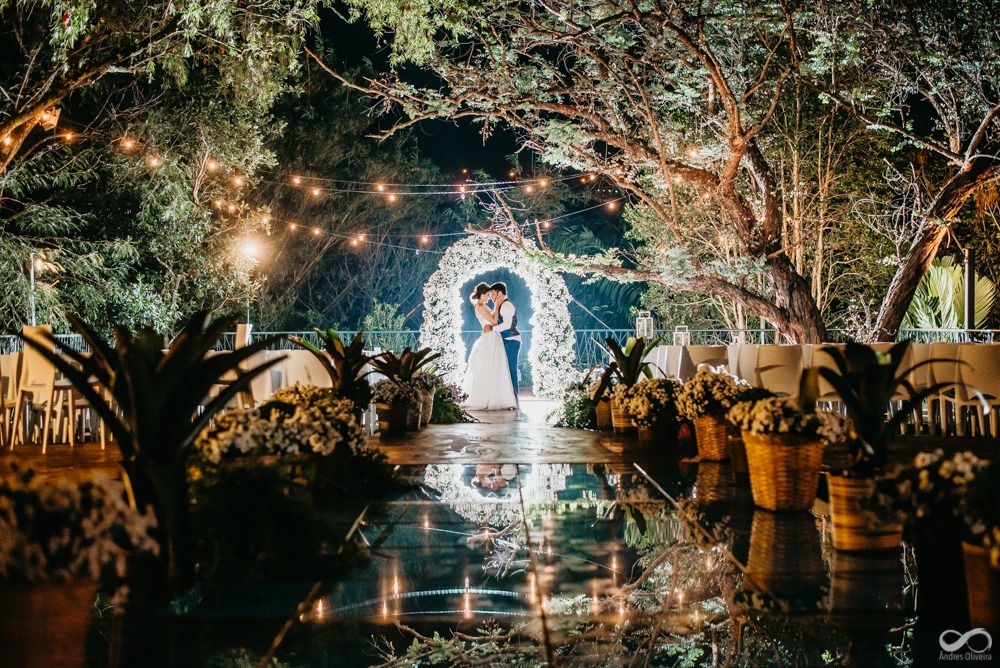 O cenário inspirador e todo o projeto criava a sensação de casamento no jardim e encantou noivos e convidados.