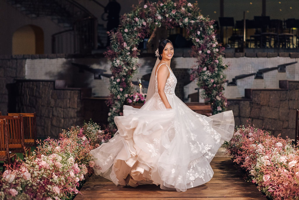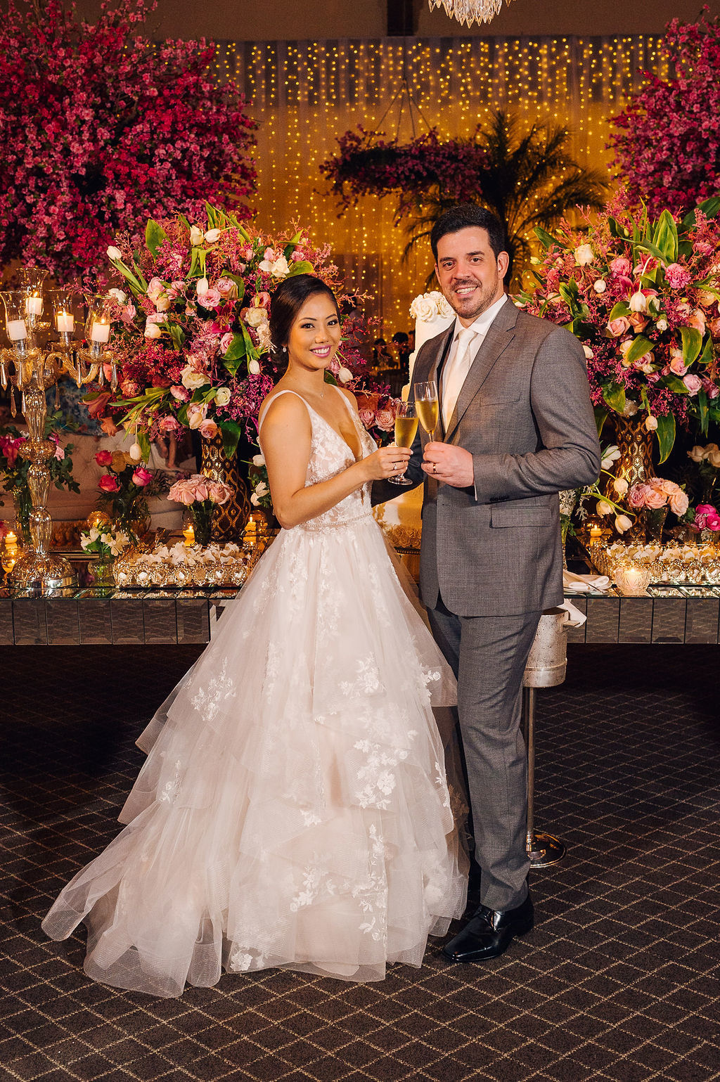 O icônico projeto Florearte Eventos assinado por nossas decoradoras impressionou pela quantidade de elementos e flores. Realmente transformamos o Royal Palm Plaza no cenário romântico e ao mesmo tempo luxuoso que os noivos sempre sonharam.