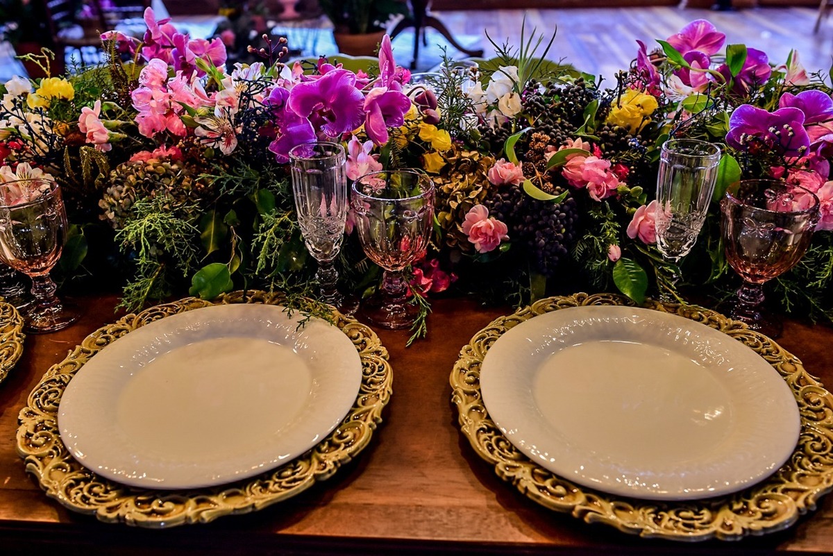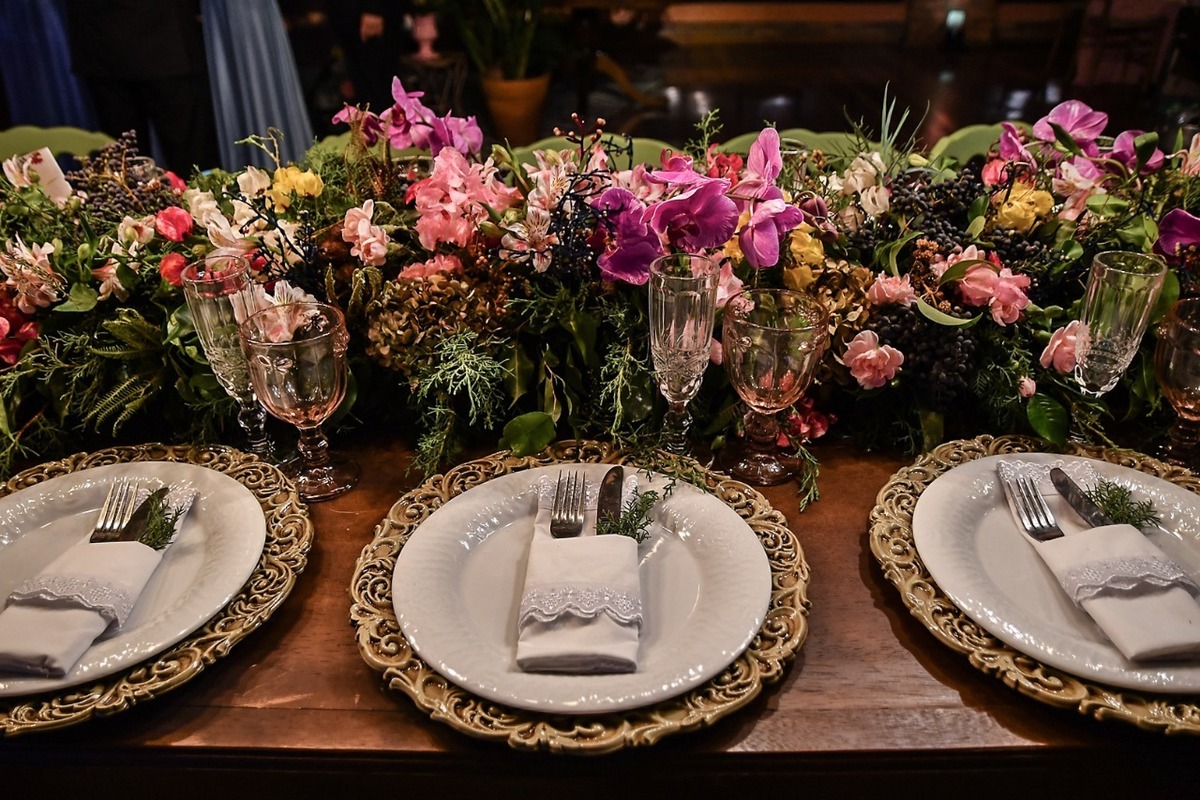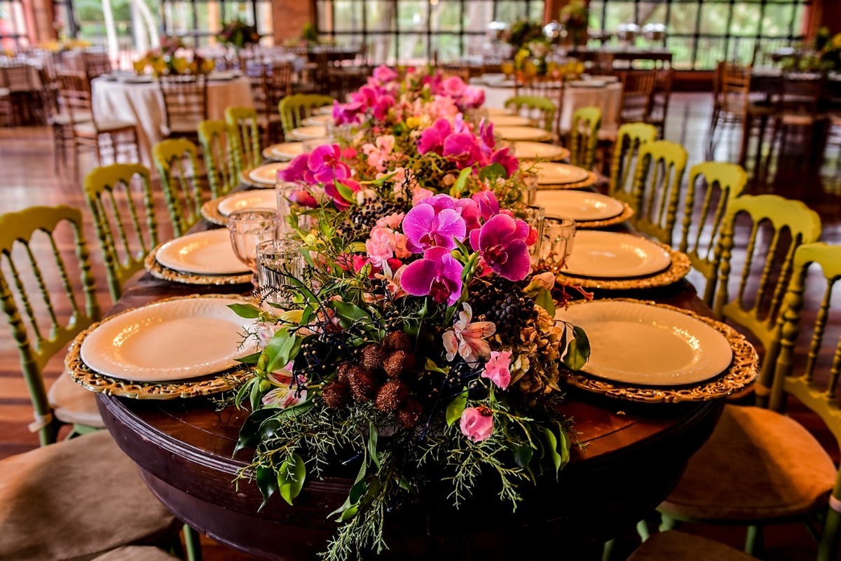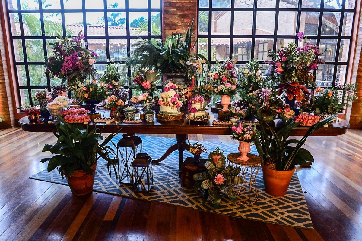 Orquídeas e inúmeras flores, folhagens e sementes diferenciadas fizeram parte dos imponentes arranjos que deram vida ao local;