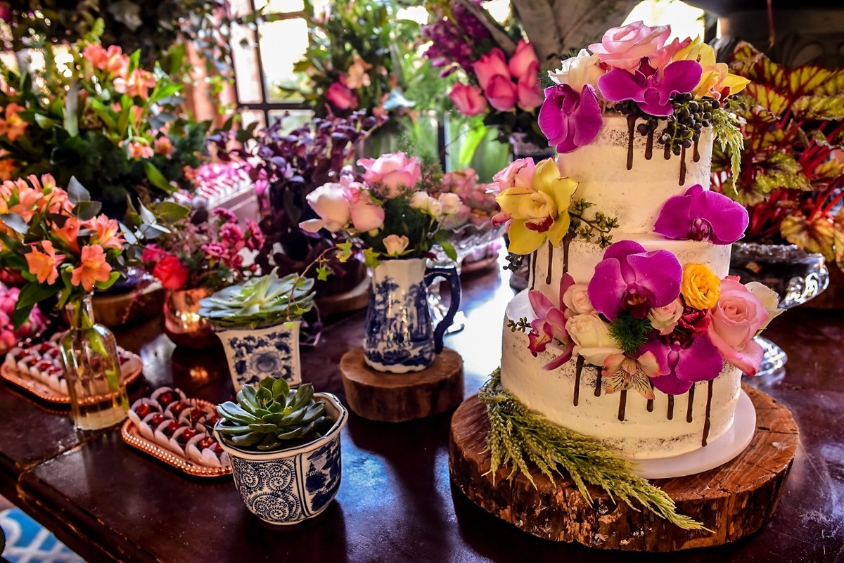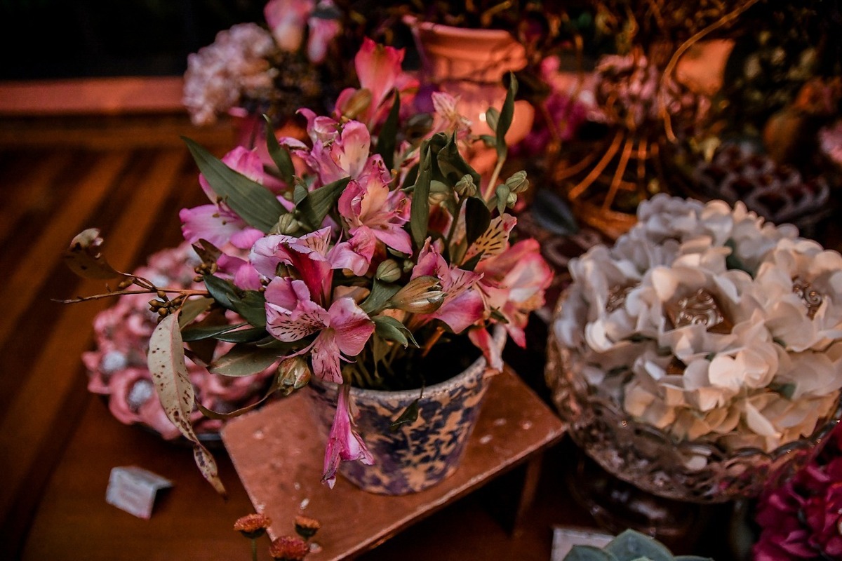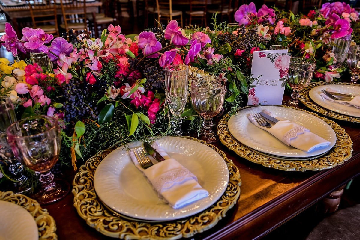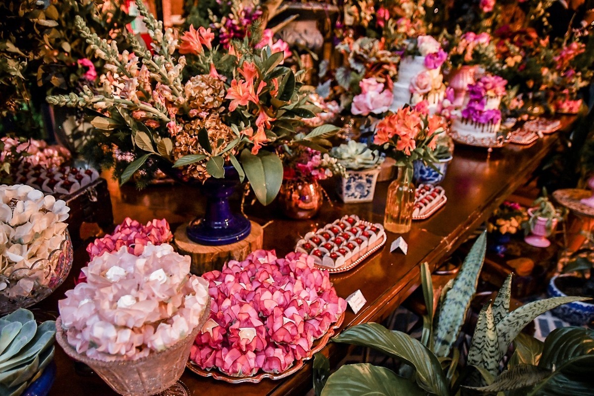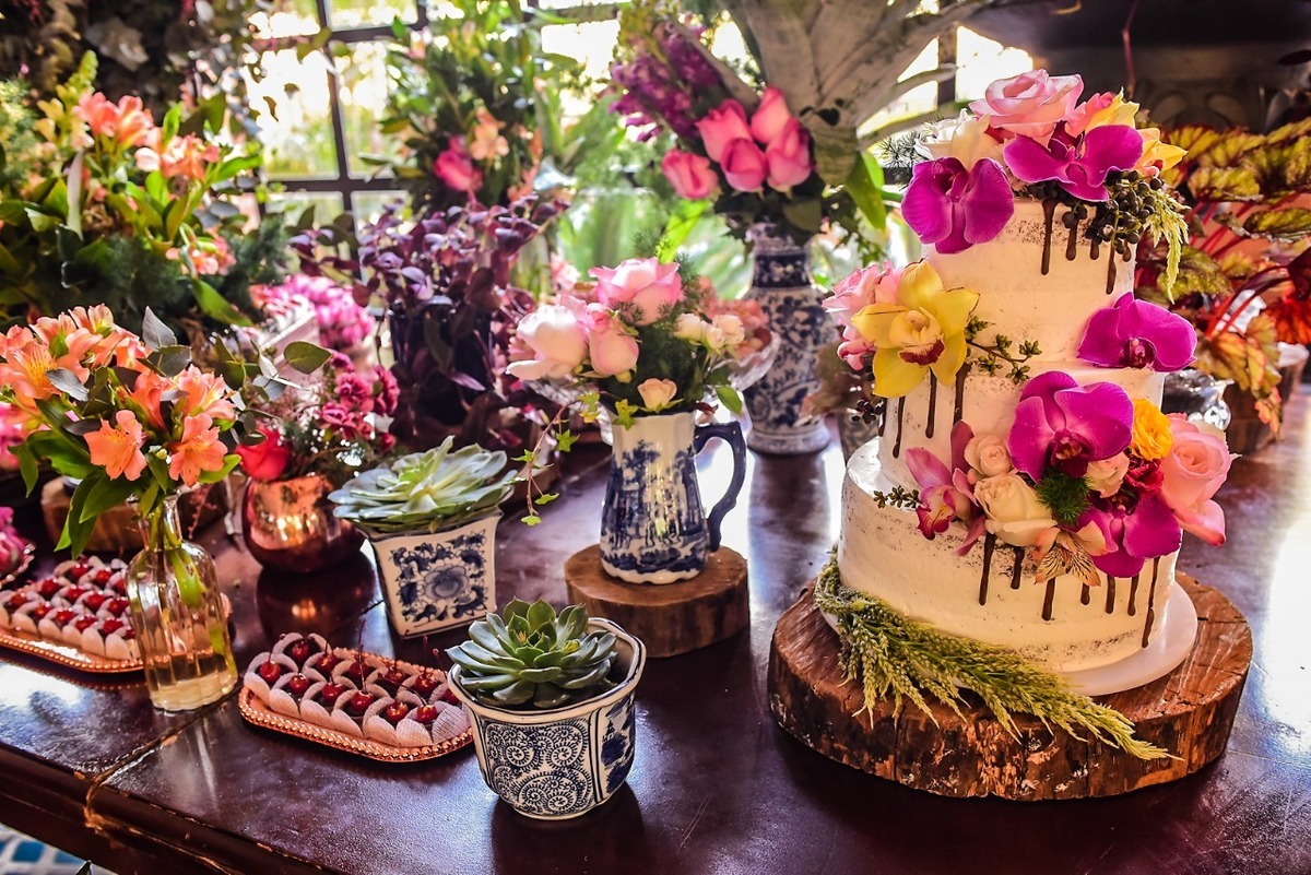 Orquídeas e inúmeras flores, folhagens e sementes diferenciadas fizeram parte dos imponentes arranjos que deram vida ao local;