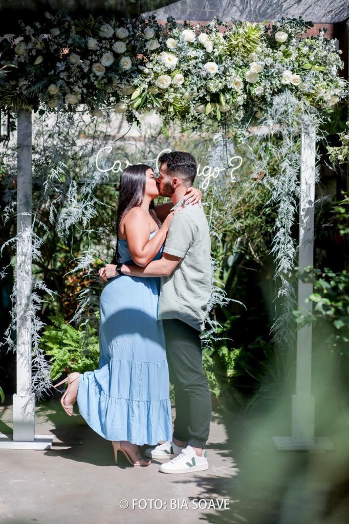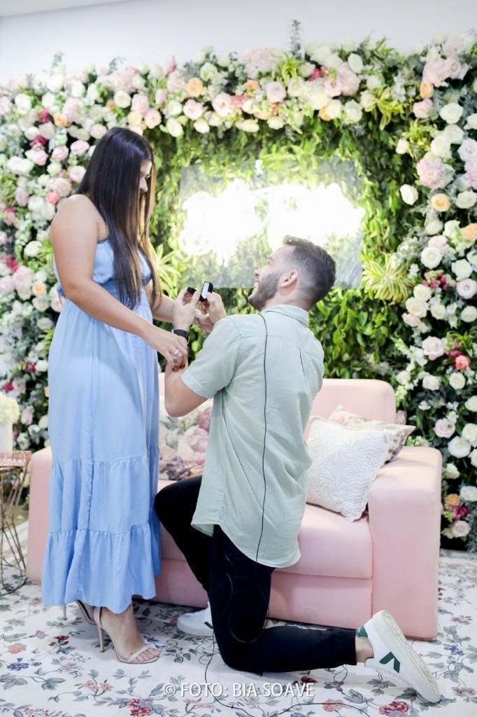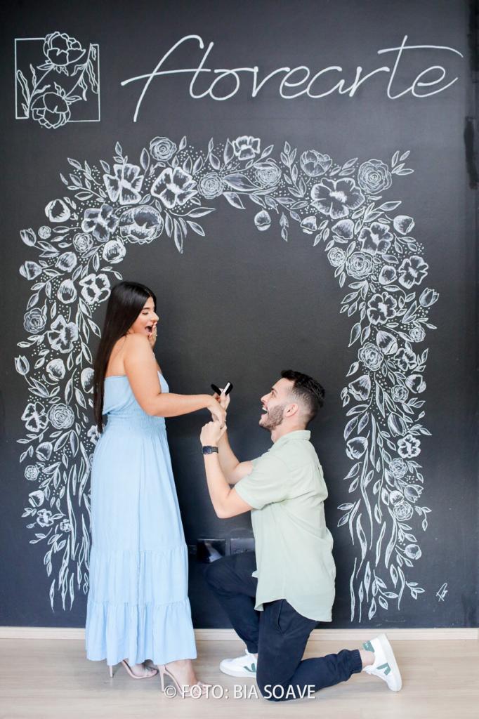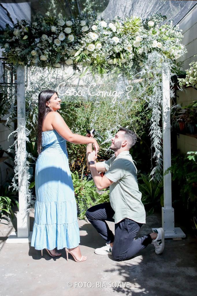 O Pedro e a Bianca se conhecem desde a adolescência, mas ela não queria namorar, porém ele não desistiu, e no momento certo eles começaram um relacionamento! Eles são noivos florearte, mas ele não tinha feito o pedido oficial ainda, então ele nos pediu ajuda para preparar uma surpresa para ela e fazer o pedido. Assim foram 15 dias de planejamento e no final deu super certo! Ela não desconfiou de nada. Foi uma surpresa e tanto, né? Um momento muito especial para ambos, pode imaginar como foi o sentimento deles? Parece um sonho...