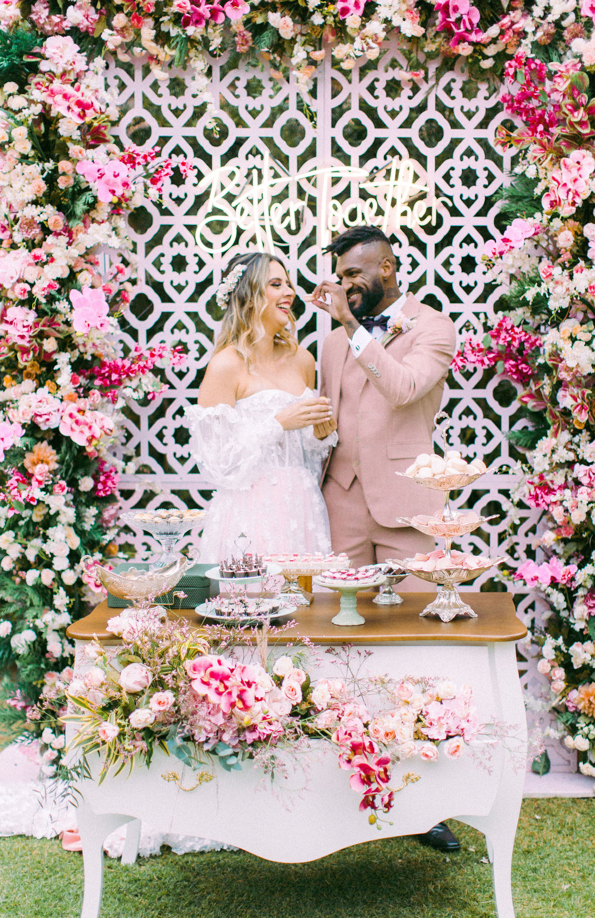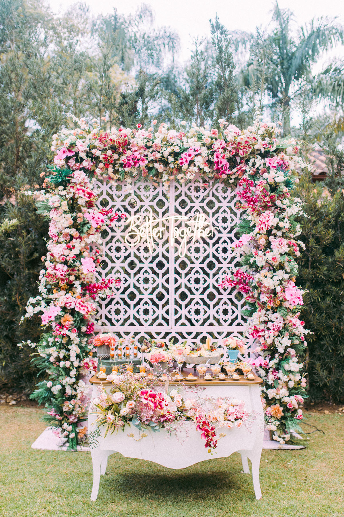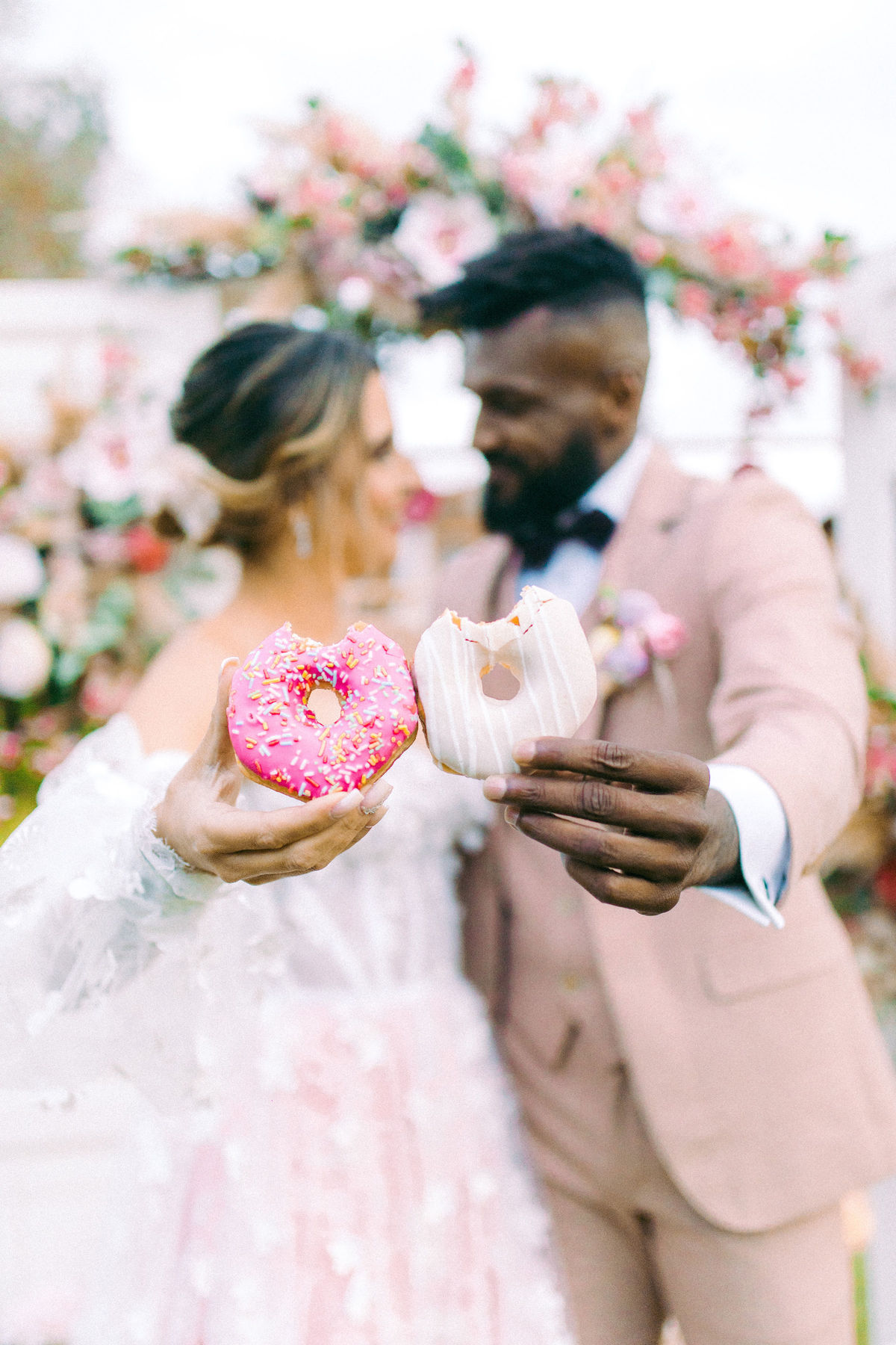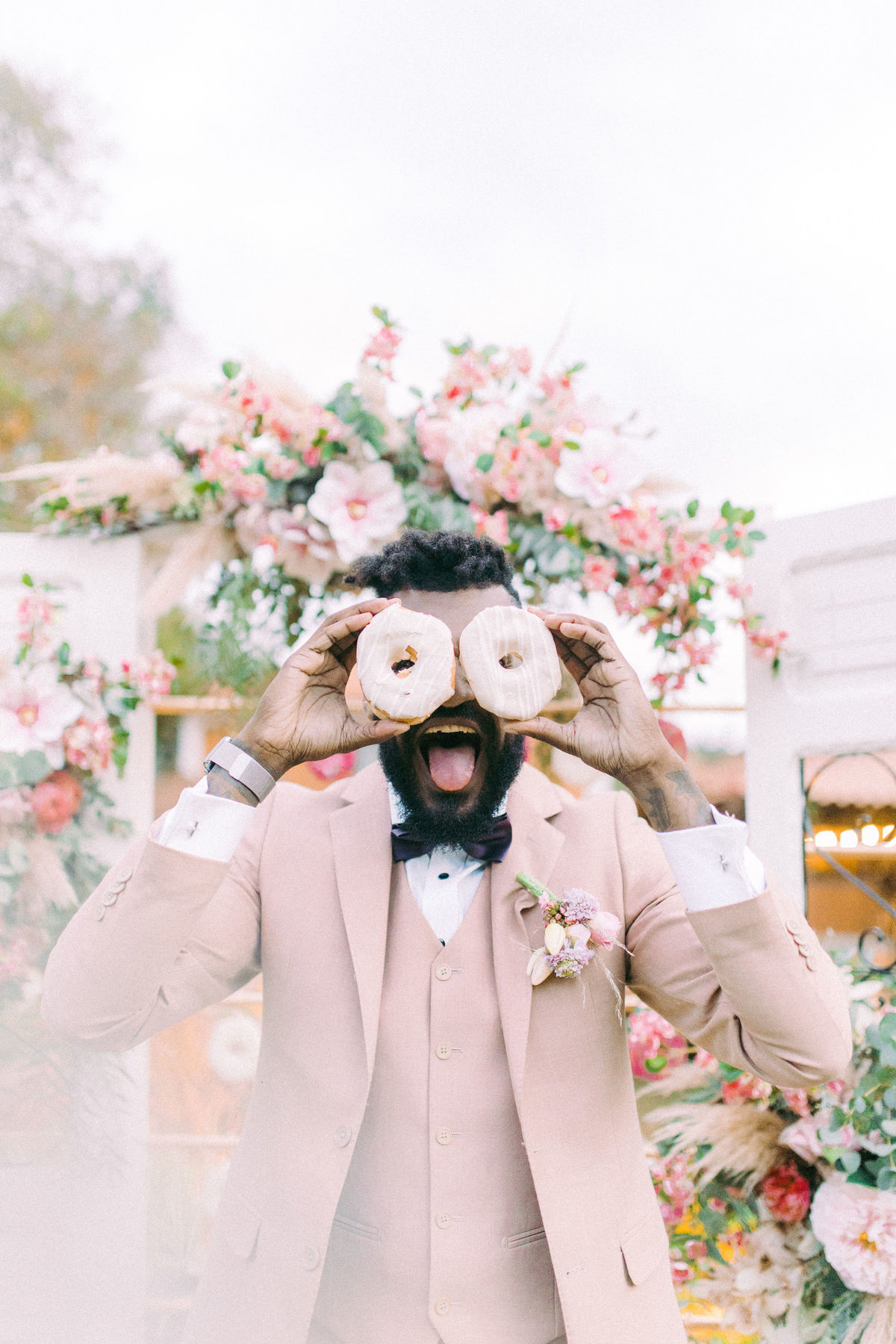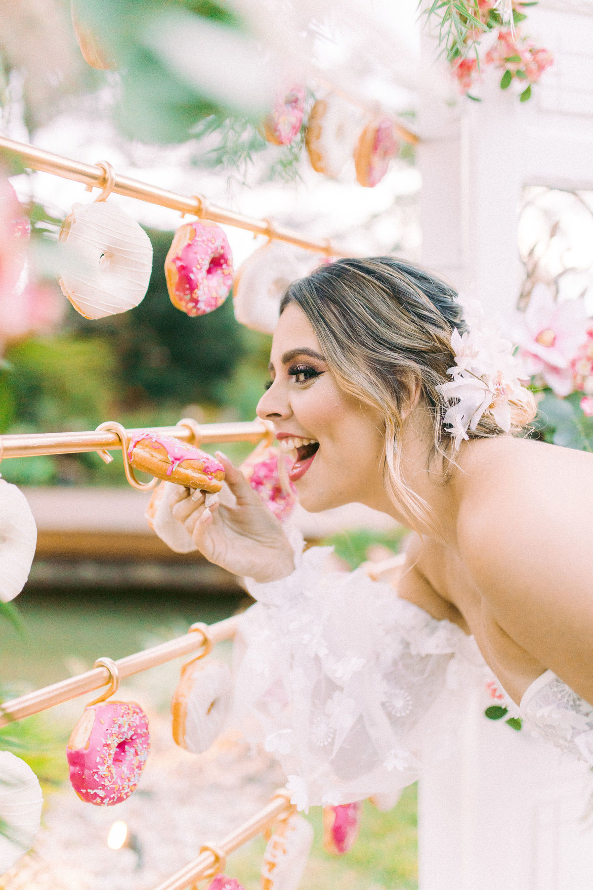 Para quem não sabe essa porta é normalmente usada para a entrada da noiva na cerimônia, mas nesse editorial incrível decidimos usar como um cantinho instagramável com donuts, isso mesmo, DONUTS!