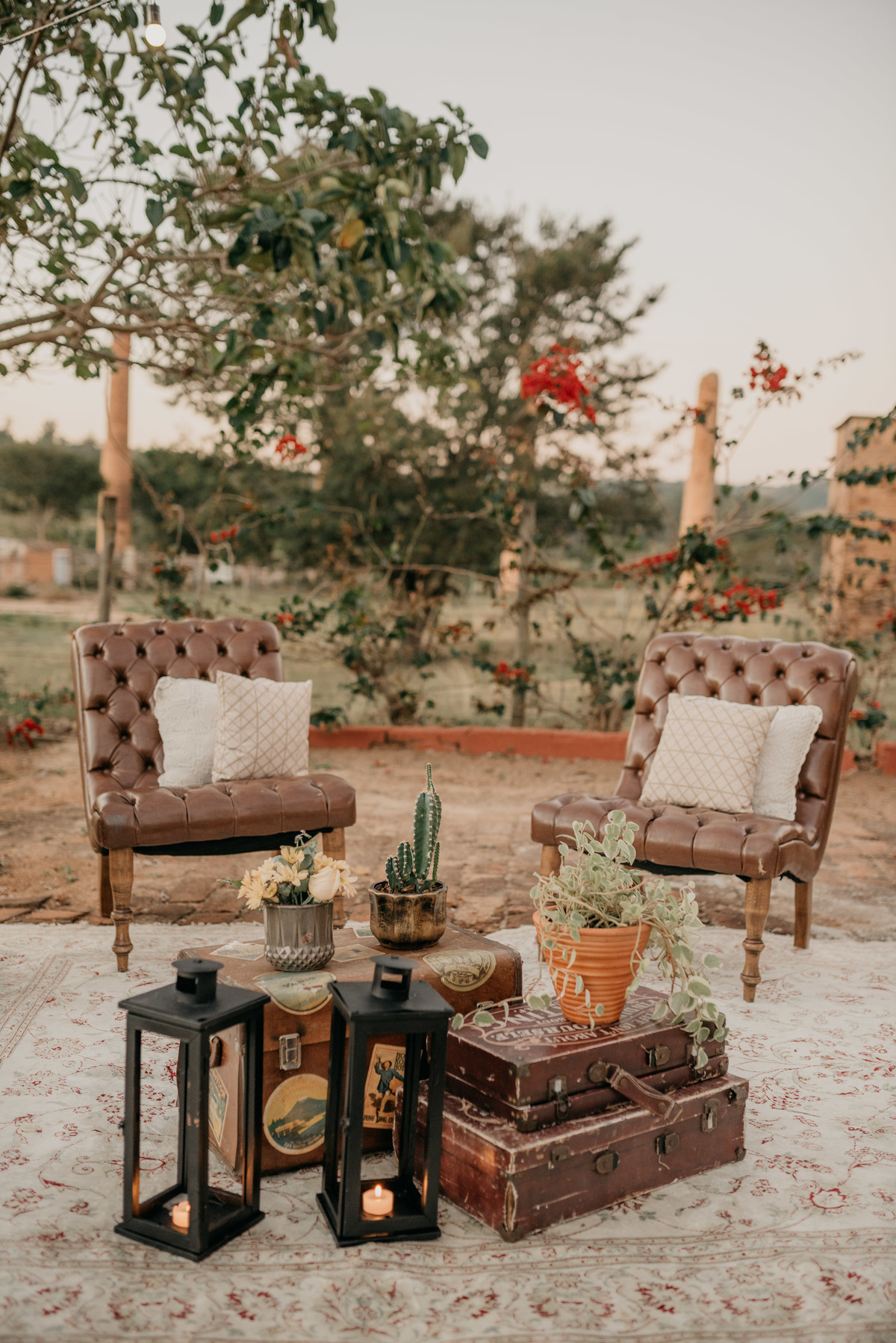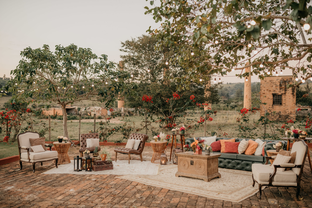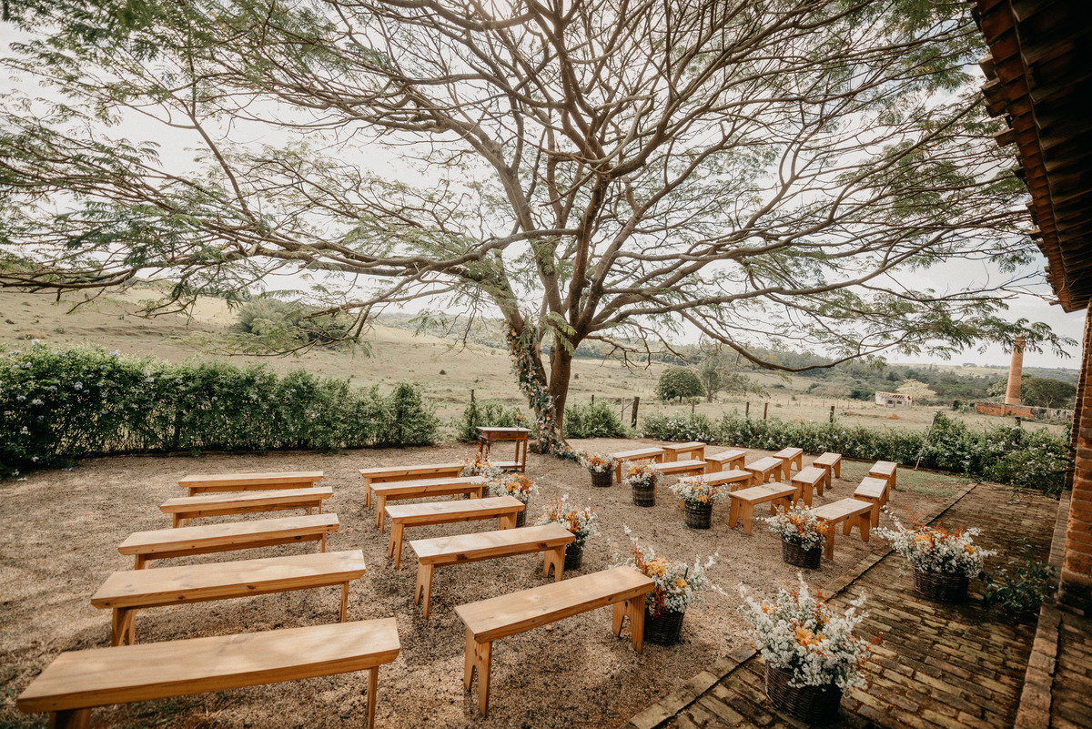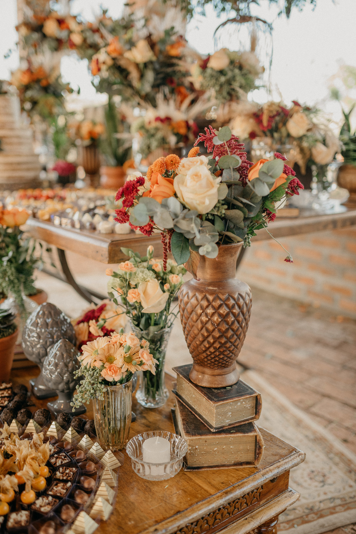 Tons terrosos, por sol e mesas comunitárias deram o toque mais que especial para essa decoração perfeita.