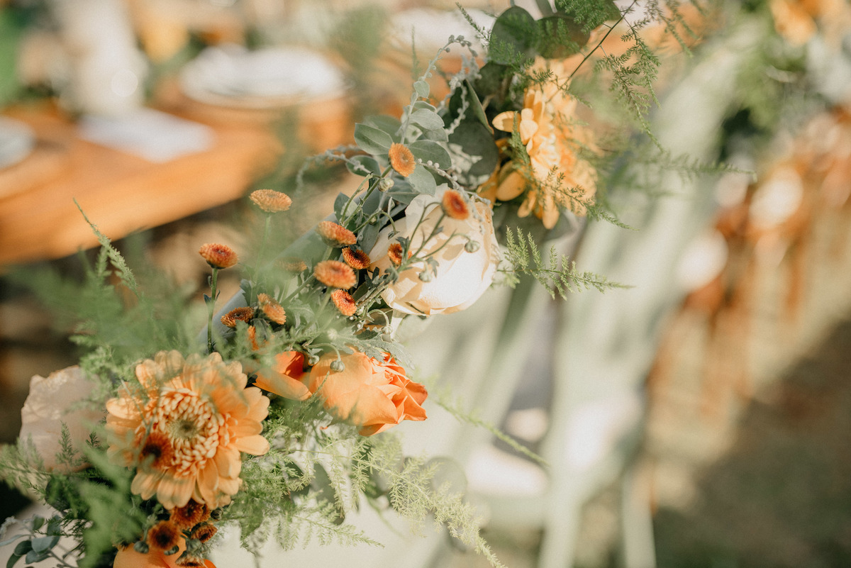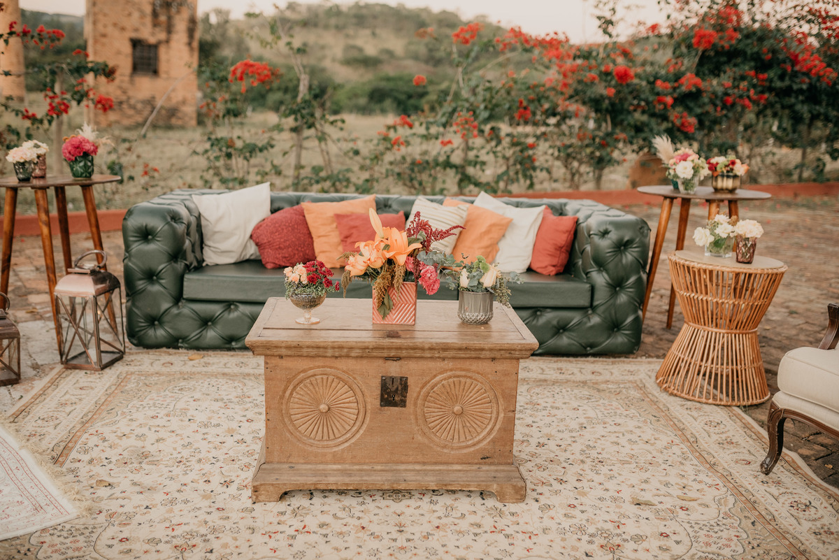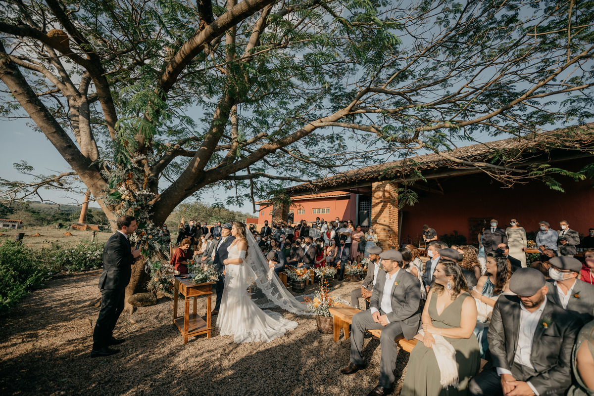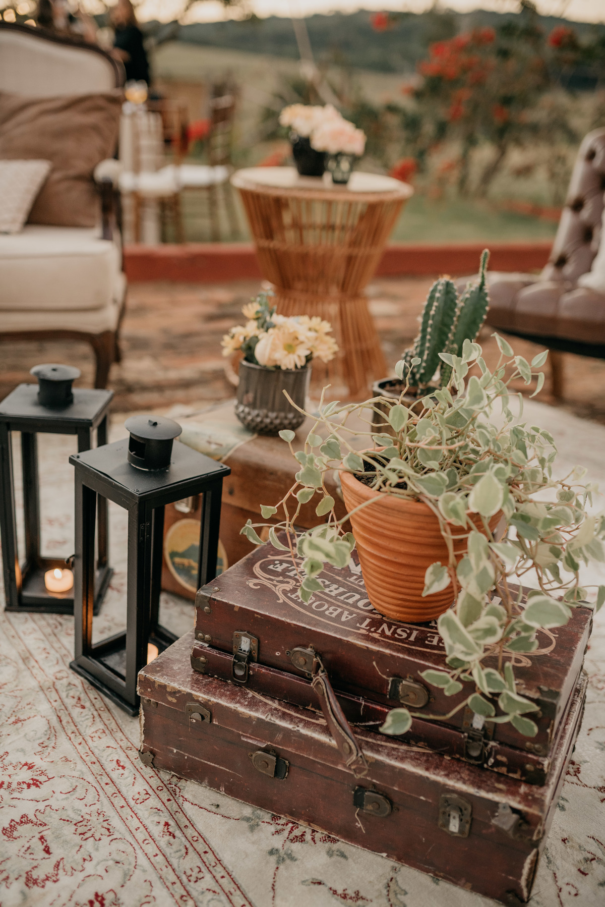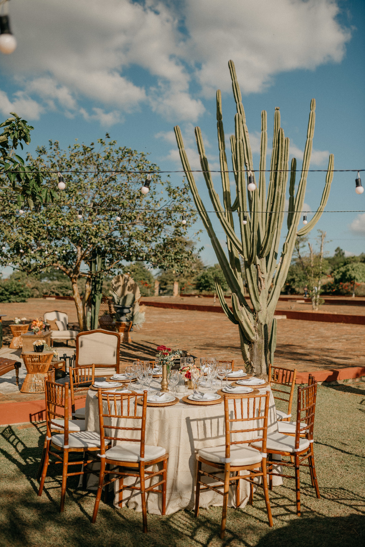 Tons terrosos, por sol e mesas comunitárias deram o toque mais que especial para essa decoração perfeita.