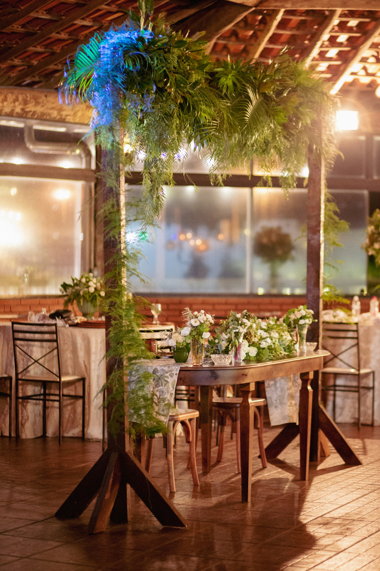 Lembre-se de usar as folhas maiores nos arranjos aéreos, e as menores como caminhos de mesa ou em arranjos baixos. Dessa forma, a folhagem não atrapalha a visão dos convidados.